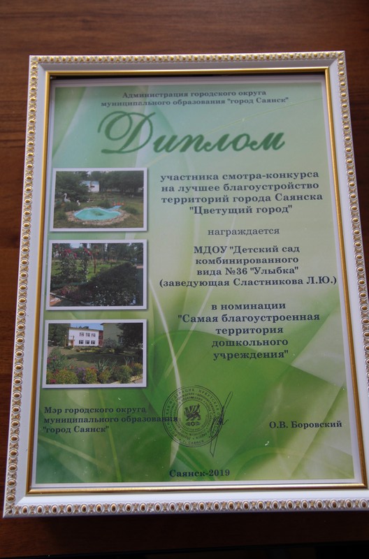 Дипломами награждены детский сад №36 «Улыбка», детский сад №19 «Росинка», дебютанты конкурса − конный дворик, постоянные участники конкурса по благоустройству – некоммерческое партнерство «Саянцы.ру» и городской совет ветеранов.