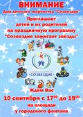 Дом детского творчества "Созвездие" 10 сентября приглашает детей и взрослых на праздничную программу "Созвездие зажигает звезды". Начала в 17 часов у городского фонтана.