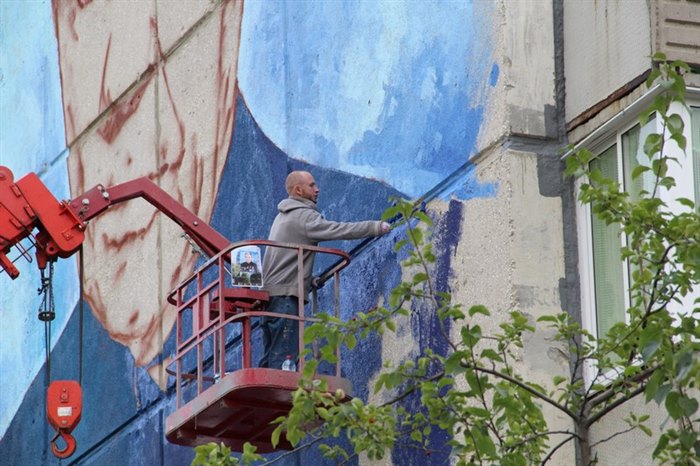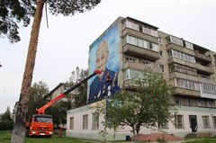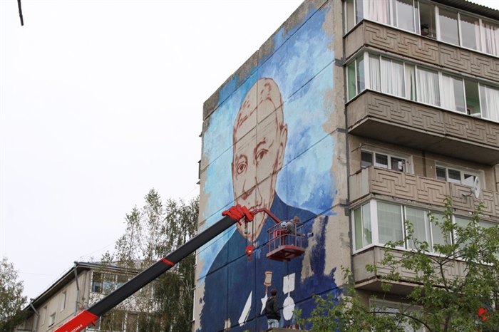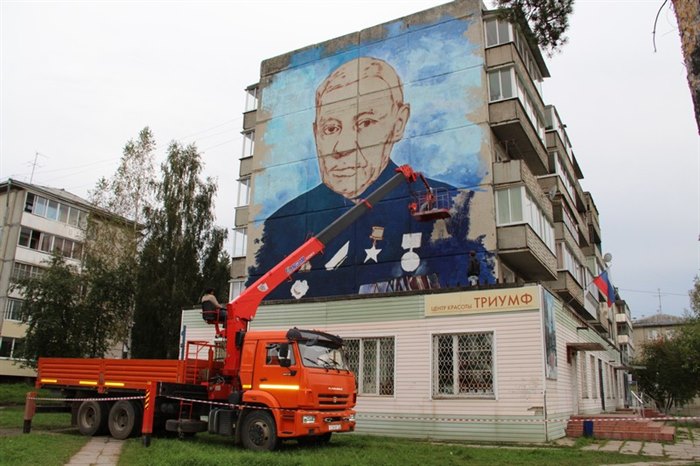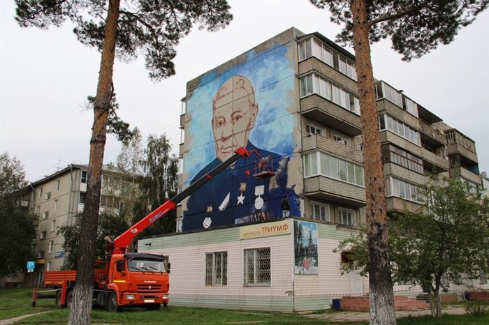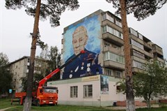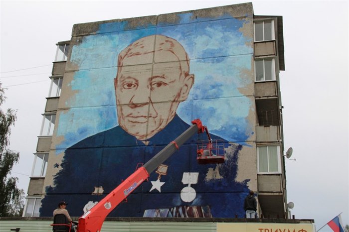 Кроме того, в рамках проекта, на стене дома №14 в микрорайоне Олимпийском изображен портрет Героя Советского Союза, который жил в нашем городе – Дмитрия Перова.