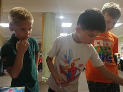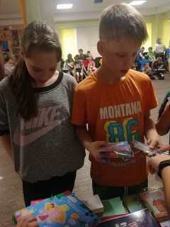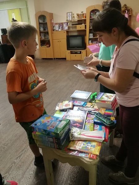 В прошедшие выходные волонтеры организовали в школе-интернате «Ярмарку добра». Воспитанники интерната получали карточки с заданиями по школьным предметам. Правильные ответы переводились в баллы, которые обменивались на канцелярские принадлежности. По словам руководителя саянских молодогвардейцев Марии Беляевской, ребята с энтузиазмом выполняли задания, обменивая карточки на наборы для творчества, цветную бумагу, пеналы и другие нужные вещи.