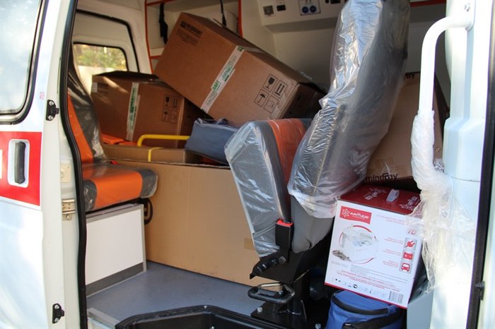 Новый автомобиль относится к классу В, то есть предназначен для оказания экстренной медицинской помощи. Оборудование, которое пока находится в коробках, предназначено для проведения лечебных мероприятий силами врачебной или фельдшерской бригады, транспортировки и мониторинга состояния пациентов на догоспитальном этапе.