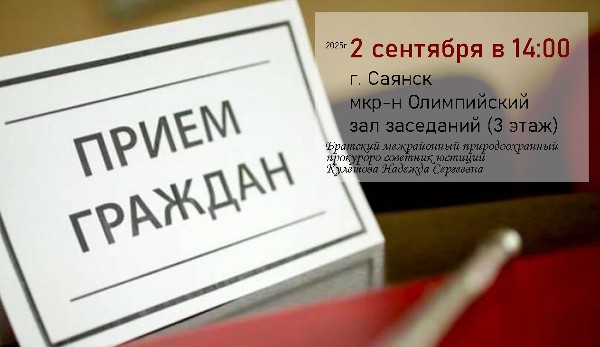 В рамках надзорной деятельности запланировано проведение личного приема граждан Братским межрайонным природоохранным прокурором советником юстиции Кулешовой Надеждой Сергеевной по вопросам защиты прав граждан на благоприятную окружающую среду и в сфере природопользования.