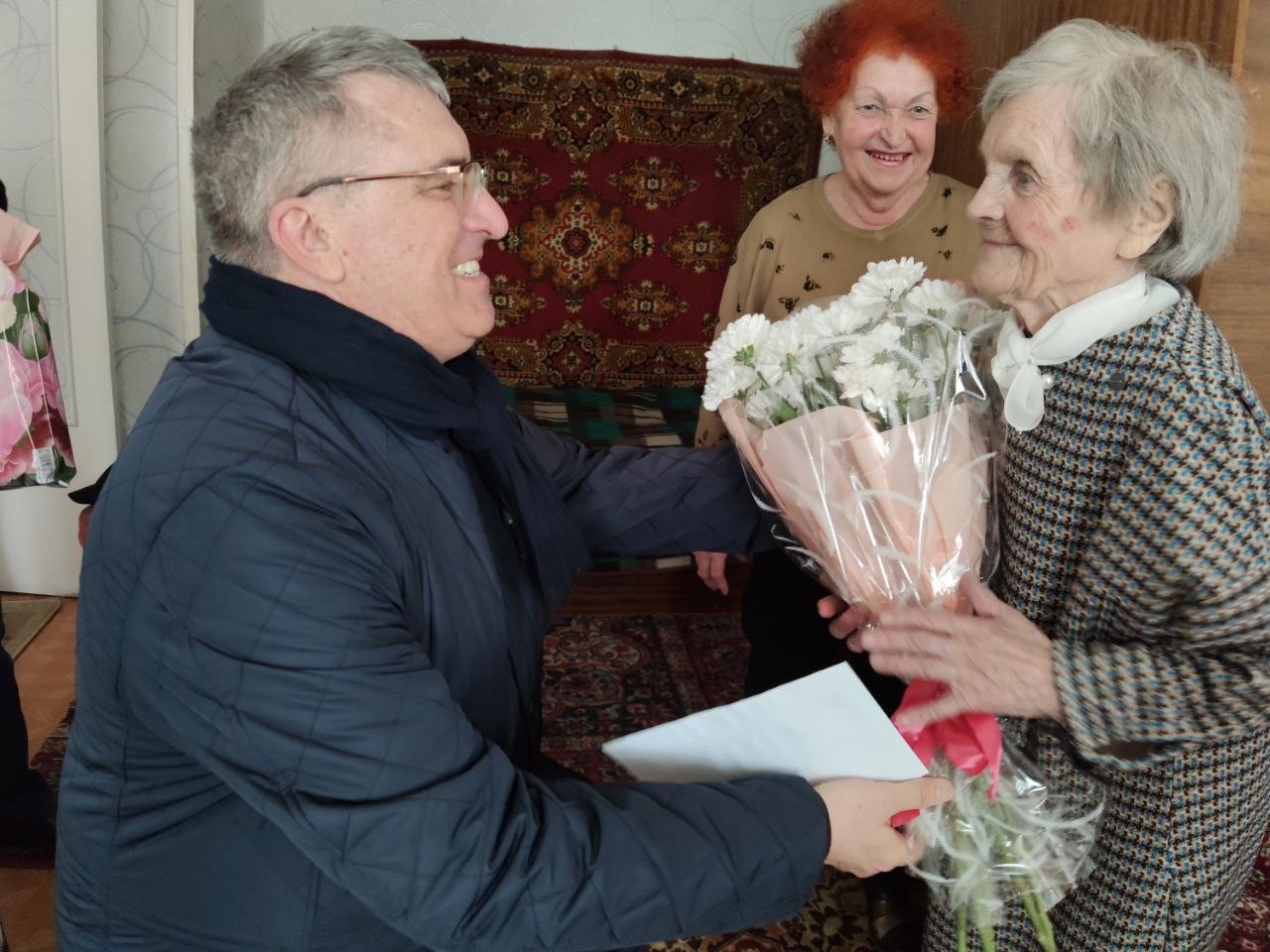 Сегодня и.о. мэра города Саянска Александр Ермаков, руководитель социальной защиты населения по городу Саянску Сергей Кривопалов, председатель советов: женщин и ветеранов Галина Алексеева и сотрудник администрации по социальной сфере Елена Долинина поздравили юбиляршу.