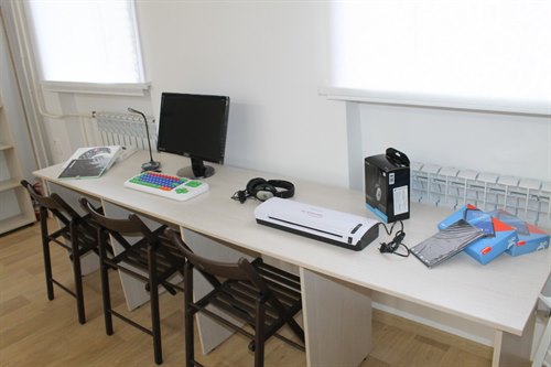 Установлены современные кафедры, – такие, чтобы на них можно было поставить ноутбуки, мониторы. Есть складные стулья, пуфики, диванчики, которые мобильно трансформируются и освобождают пространство для каких-то массовых мероприятий. На индивидуальных рабочих местах будут установлены четыре моноблока, один из которых предназначен для людей с ограниченными возможностями здоровья. Там будет установлена специальная программа и клавиатура для слабовидящих.