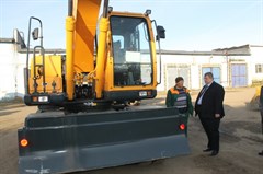 15 октября мэр Саянска Олег Боровский побывал в МУП «Водоканал-Сервис», куда прибыла новая техника – экскаватор «Hyundai 210». По словам директора предприятия Сергея Еременко, эта машина – самая большая из колесных экскаваторов, с хорошей маневренностью. Машина полностью оснащена всем необходимым, с комфортабельной кабиной для водителя, в которой есть кондиционер и отопление.