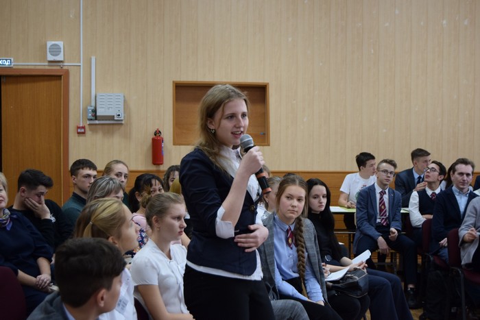 Очередная встреча в рамках проекта городской дискуссионной площадки «Диалог о будущем» состоялась на базе гимназии. Встречи дискуссионного клуба проходят в городе с 2012 года с целью реализации личностного и информационно-медийного направлений Российского движения школьников и проекта «Диалог с министром». Проект способствует выявлению и поддержке учащихся, заинтересованных в конструктивном решении социальных проблем. Учащиеся городских школ – завтрашние выпускники, педагоги и представители городской администрации встречаются, чтобы обсудить насущные проблемы, с которыми сталкивается молодое поколение. Не секрет, что отцы и дети не могут чувствовать и думать одинаково, это вечный конфликт. Участники переговорной площадки собираются для того, чтобы найти компромисс в этом вопросе, общие точки соприкосновения, построить диалог.