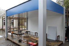 На отремонтированном участке проспекта Ленинградского установят 6 новых остановочных павильонов. Их изготовлением занимается ООО «Фронтаж». Как рассказал руководитель предприятия Иван Ерофеев, в основе модульных остановочных павильонов – металлокаркас, который отделывается композитными материалами, боковые стены – из "каленого" стекла. Павильоны будут с освещением. Мэр Олег Боровский сказал, что в перспективе планируется сделать освещение от солнечных батарей, с датчиками движения.