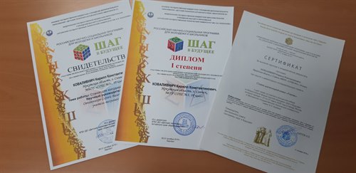 Кирилл успешно прошел заочный конкурсный отбор и отлично защитил свою работу на очном туре ФОС, где завоевал заслуженное 1 место. Кирилл получил сертификат на право участия в Московском научном форуме, который состоится в марте 2020 года.