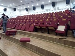 - При заказе кресел мы учитывали, что они должны вписываться в общую концепцию зала, составлять единый ансамбль с архитектурой, одеждой сцены, – говорит Светлана Каплина. – Наши новые кресла функциональные, удобные, антивандальные, с надежной конструкцией металлокаркаса, гравитационным подъемным механизмом, обивкой из специальной плотной износостойкой ткани, подлокотниками из массива бука. Процесс изготовления кресел мы сами контролировали, лично бывали на производстве, где проводились работы.
