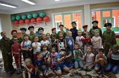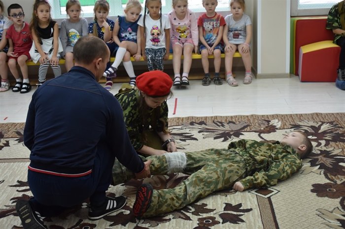 Бойцы отряда показали действия боевой группы в разведке, эвакуацию раненого бойца с поля боя, учебный рукопашный бой. Ребята учатся в четвертом классе, их отряд создан в начале учебного года и, несмотря на небольшой стаж занятий, мальчишки ловко собирают-разбирают автомат и пистолет Макарова, умеют снаряжать «магазин». Девочки показали навыки оказания первой помощи, бинтуя «раненых».