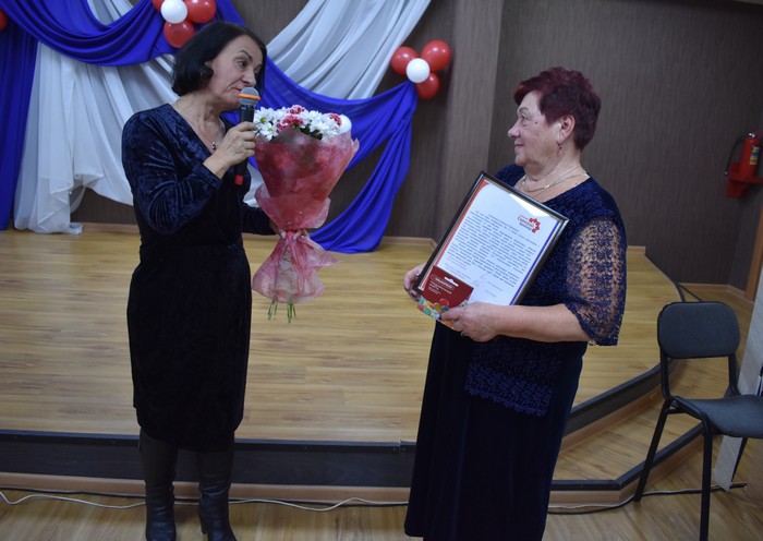 Людмила Ефимовна Новичкова в ответном слове поблагодарила гостей за сотрудничество, вручила грамоты и благодарности активным участникам и партнерам организации. Праздничное настроение поддерживала ведущая программы, режиссер массовых мероприятий ДК "Юность" Елена Успенская и творческие коллективы, исполнившие замечательные концертные номера.