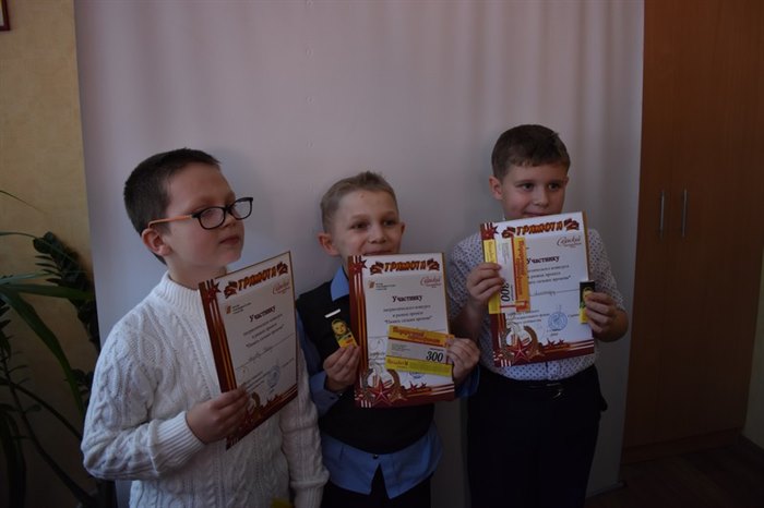 В творческом конкурсе приняли участие 56 ребят. Все они получили грамоты, сертификаты магазина «Продалит» и сладкие призы. Победителями в номинации «стихотворение» стали Михаил Вебер, Никита Романов, Михаил Симонов. В номинации «рисунок» жюри отметило лучшие работы Александры Сапранковой, Глеба Котова, Ани Пишко. Самыми активными были гимназия, школы №№ 2 и 7.