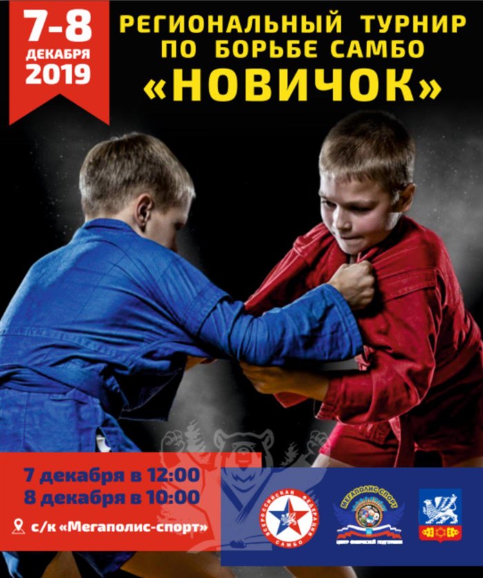 7 и 8 декабря в центре физической подготовки "Мегаполис-спорт" будет проходить региональный турнир по самбо "Новичок". Начало в 12 часов 7 декабря и в 10 часов 8 декабря.