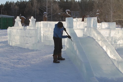 Один из участников творческой команды, Евгений Терещенко, рассказывает, что 17 лет занимается изготовлением ледовых скульптур, создавал их в Иркутске, Ангарске, Шелехове, а вот в Саянске в первый раз. Говорит, что, несмотря на зимние холода, в городе очень теплая моральная атмосфера.