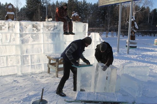 Бригада мастеров из города Байкальска под руководством Андрея Пылюха ведет работы в Саянске уже четвёртый раз. Завозится лёд, идёт его резка, составляется каркас для многофигурных ледовых композиций. Участие в работе и авторский надзор осуществляет саянский мастер Николай Скареднев, который вошел в число разработчиков концепции ледового городка.