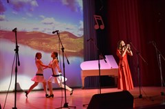 Ирина Дмитриевна раскрывала все новые вехи творчества талантливого композитора, как яркие иллюстрации к повествованию – песни из кинофильмов в исполнении ансамблей «Лучинушка», руководитель Виктор Бондарь, «Сударушки», руководитель Юрий Макаренко, «Вишенка» и «Созвучие», которыми руководит Ирина Бондарь. Особую страницу в творчестве Александры Пахмутовой занимали произведения о покорении Сибири. Песни о трудовых подвигах подарили зрителям «Сударушки», педагог ДШИ, солистка ансамбля «Таежный квартал» Юлия Задорина. Тему Родины песней «Орлята учатся летать» ярко представил хор эстрадного отделения ДШИ, руководитель Наталья Воробьева.