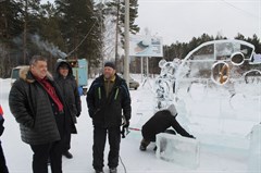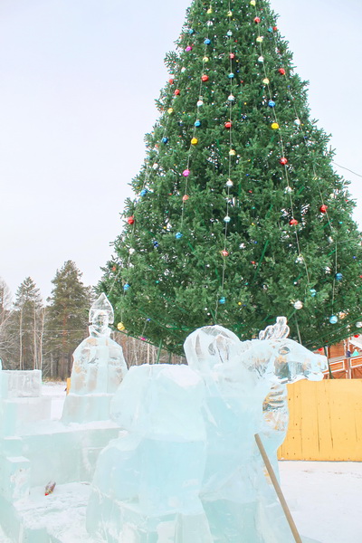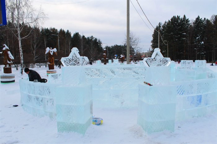 Продолжается оформление территории Снежного городка. Сегодня здесь побывал мэр Олег Боровский, посмотрел, как идет сооружение ледовых композиций, пообщался с мастерами-резчиками под руководством мастера Андрея Пылюха