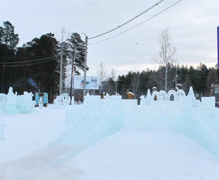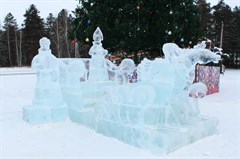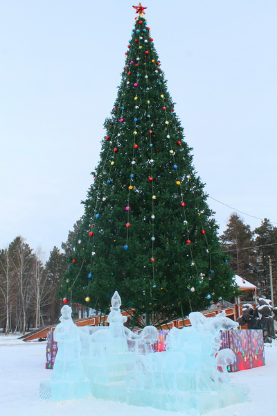 Тройка ледяных коней – декабрь, январь и февраль, добрый Дедушка Мороз и его внучка Снегурочка, ледяной лабиринт с горками для катания и символом наступающего года, столики кафе изо льда, фотозоны. Мастера создали красивую сказку из прозрачного льда. По вечерам городок и красавица-елка светятся праздничными огнями. Дети и взрослые приходят сюда, чтобы прокатиться на горке, сфотографироваться.