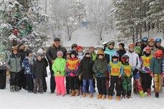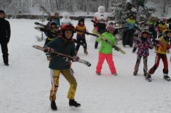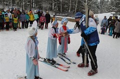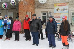 Юные лыжники исполнили спортивный танец, а затем начались состязания.
