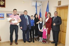 Многодетную семью поздравил заместитель мэра Саянска по социальным вопросам, секретарь Саянского городского отделения партии «Единая Россия» Александр Ермаков, он вручил игрушечный автомобиль для малыша. «Пусть любовью и душевным теплом будет согрет ваш домашний очаг», – сказала начальник саянского отдела службы ЗАГС Марина Дощечкина. Она подарила мягкую игрушку.
