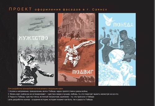 Директор благотворительного фонда Полина Сурина рассказала о работе, которая ведется в плане разработки триптиха победной тематики, который планируется разместить на домах № 73, 74, 75 в микрорайоне Юбилейном. Эскизы изображений готовит иркутская фирма «PRO ART», которая специализируется на росписи интерьеров и фасадов. Представленный специалистами фирмы эскиз был одобрен присутствовавшими на заседании. Наносить изображения на здания будут также специалисты этой фирмы, уже зарекомендовавшие себя в нашем городе. Они рисовали портрет ветерана войны Героя Советского Союза Дмитрия Михайловича Перова на доме №14 в микрорайоне Олимпийском в рамках проекта «Память сильнее времени», выигранном благотворительным фондом в конкурсе Фонда Президентских Грантов. Они же будут работать над портретом фронтовика Михаила Григорьевича Карнаухова.