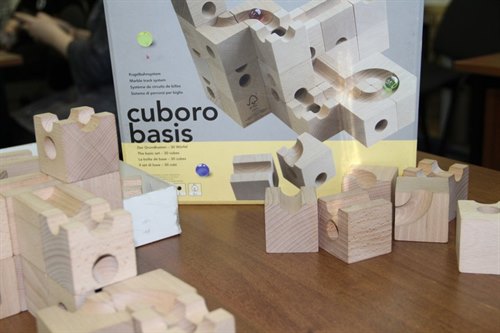 Для справки:Cuboro – это деревянный конструктор, состоящий из симметрично дополняющих друг друга кубиков и стеклянных шариков. С помощью этих кубиков может быть создан путь, который приведет шарик от начала до конца маршрута. Из кубиков набора Cuboro можно построить конструкцию, напоминающую лабиринт, по которой будет двигаться стеклянный шарик. Такие конструкции называются двухмерными. Стеклянные шарики идеально соответствуют желобам и тоннелям на кубиках Cuboro. Поэтому, при правильно выстроенной конструкции, шарики за счет своей кинетической энергии катятся по выстроенному пути очень долго.