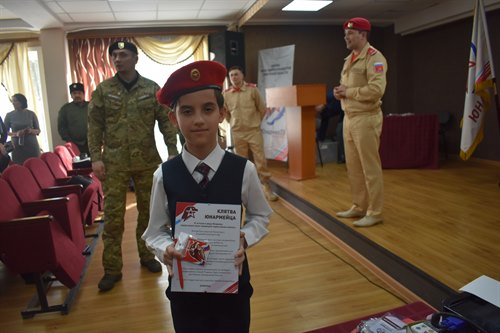 Ярким событием собрания стал торжественный прием в ряды юнармейского движения учащихся школы № 5. Воспитанники школьного военно-патриотического клуба, руководит которым педагог Михаил Костюкович, дали клятву юнармейца и получили из рук руководителей регионального штаба значки и планшеты с текстом клятвы. Отряд старшеклассников школы также вступил в ряды юнармии. Ученики школы № 3, принятые в движение на областном слете, также получили значки и кубок победителя тех соревнований.
