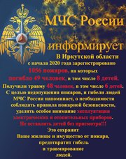 В период с 11.03.2020 по 12.03.2020 произошло резкое ухудшение оперативной обстановки в связи с произошедшими пожарами по адресам: Иркутский район, р.п. Маркова, ул. Родниковая, 27, с гибелью 3 человек (в том числе 2 детей), Казачинско-Ленский район, с. Казачинское, ул. Советская, 97, с гибелью 5 человек (в том числе 3 детей), в течение суток на пожарах погибло 8 человек, в том числе 5 детей.