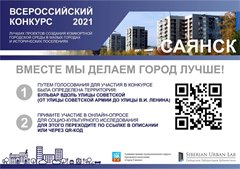 Уважаемые саянцы! Уже несколько лет в России проводится "Всероссийский конкурс лучших проектов создания комфортной городской среды для малых городов и исторических поселений" (https://konkurs.gorodsreda.ru/#about). Наш город уже не первый раз участвует в этом конкурсе. Мы, команда администрации города Саянска и Сибирская Лаборатория Урбанистики, приглашаем Вас принять участие в проекте. Городская среда – это прежде всего результат деятельности всех городских субъектов (администрации / бизнеса / активистов / жителей). Ваше активное участие позволит нам создать сильный проект, учитывающий максимум мнений, идей и предложений, живой и объединяющий жителей.