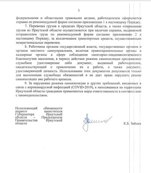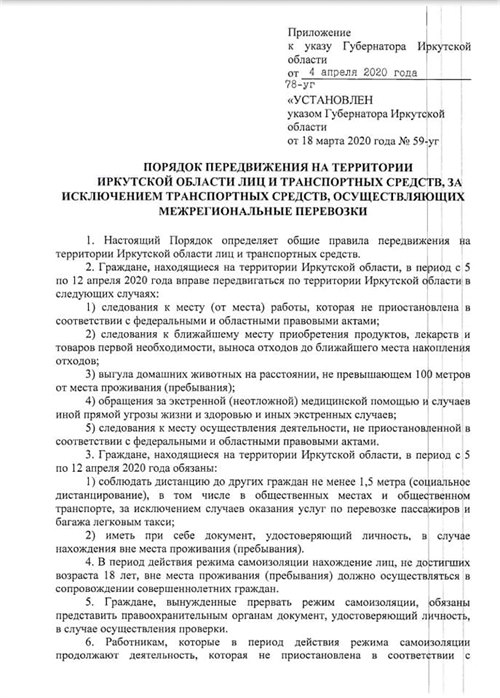 Порядок передвижения на территории Иркутской области граждан и транспортных средств