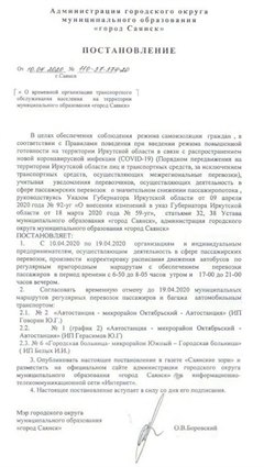 Постановление администрации города Саянска о пассажирских перевозках