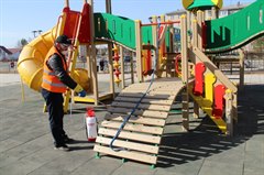 − Обработали парковые зоны города: «Зеленый», «Первостроителей», площадь в районе фонтана, возле загса, сквер возле МЖК, сквер Ветеранов, а еще в нашу задачу входила обработка скамеек на городских улицах, − пояснила мастер «Саянской дорожной службы» Светлана Уколова. – Специальным раствором опрыскивали все игровые площадки, спортивное оборудование, воркауты, ограждения.