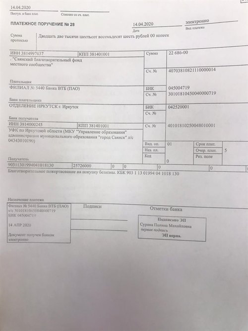 Средства на приобретение «Белизны», выделенной для больницы, муниципалитету компенсировал саянский благотворительный фонд.