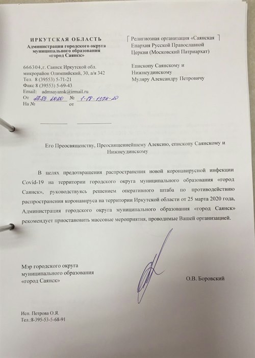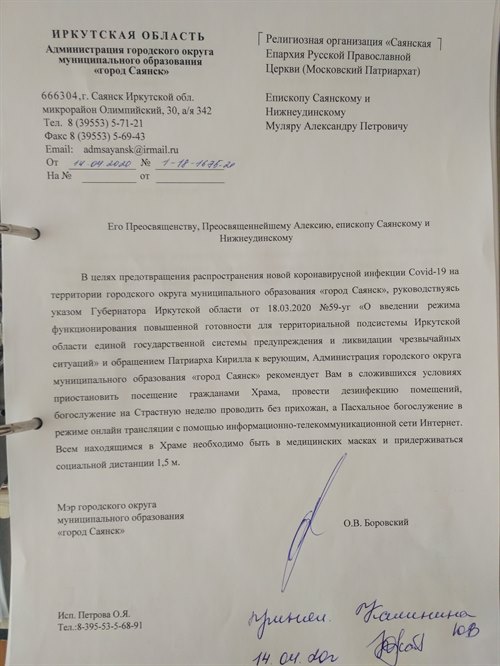 В конце марта мы направили в адрес Саянской епархии письмо, в котором просили приостановить массовые мероприятия.
