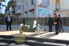 Мэр Саянска Олег Боровский побывал в сквере Ветеранов, где будет установлена реплика (копия) пушки-сорокопятки, которая уже доставлена в город. Решено, что пушка будет установлена на площадке перед стеной Памяти. Такое решение было рассмотрено на практике – пушку доставили в сквер, закатили на площадку. После утверждения места установки пушку увезли из сквера на место временного хранения на территории «Водоканал-Сервиса» – на то время, пока будет готовиться основание для ее установки.