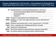 Сводная информация об обстановке с коронавирусной инфекцией в Иркутской области