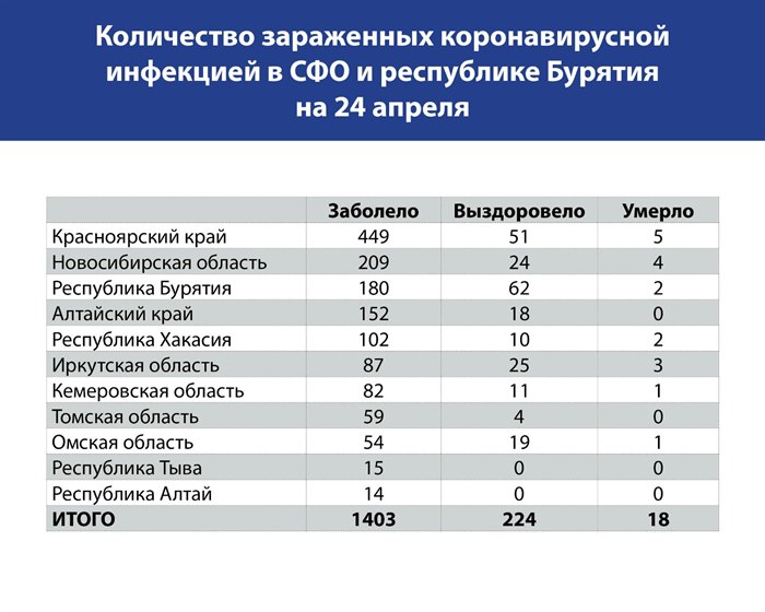 Количество зараженных коронавирусной инфекцией в СФО и республике Бурятия