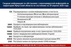 Сводная информация по обстановке с коронавирусной инфекцией на территории Иркутской области