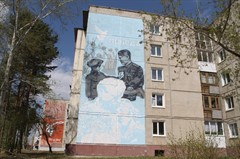 В рамках проекта «Живая история», а также с привлечением средств Благотворительного фонда местного сообщества по инициативе мэра города Олега Боровского, на стенах трех домов микрорайона Юбилейного (№73, №74, №75) появилась композиция, состоящая из трех сюжетов, объединенных в единую тему Победы.