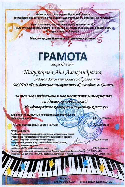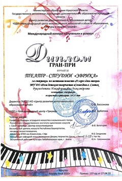 В международном конкурсе «Ступеньки к успеху», организованном международным центром инновационных технологий в области образования, культуры и спорта «Триумф» и региональным министерством образования, «Эврика» участвует уже несколько лет. Традиционно конкурс собирает до 600 участников, спектакли саянских театралов всегда занимают призовые места. Ранее артисты выезжали на конкурсные показы, в этом году конкурсный отбор был организован дистанционно. В составе жюри – педагоги кафедры эстрадного искусства и музыкального театра Российского государственного института сценических искусств Санкт-Петербурга, деятели искусств России и Китая. Столь представительное жюри дало постановке «А зори здесь тихие» наивысшую оценку – гран-при конкурса.