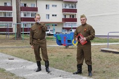 Во дворах жилых домов Саянска, где живут участники Великой Отечественной войны, на открытых площадках прошли творческие выступления для ветеранов. Со словами поздравления к ветеранам обратился ведущий Антон Григорьев. Песни о войне и победе исполнили Юрий Мурашов и Николай Соклаков. Участие в организации поздравления приняли сотрудники сферы культуры, молодежной политики, работники управляющих компаний, волонтеры. В рамках добровольческой акции волонтеров Иркутской области МыВместе участникам войны были вручены в подарок продуктовые наборы. К поздравлениям присоединились предприниматели – ООО «Байкал-Авто» (руководитель Владимир Герасимов) совместно с ООО «Сафари Плюс» (руководитель Ирина Коломина) организовали праздничный салют, который прозвучал в каждом дворе, где живут участники войны.
