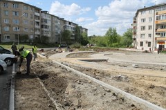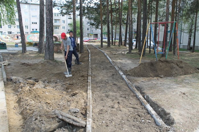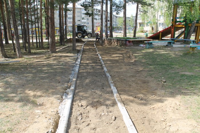 Большой объем работ выполняется в будущем сквере Комсомолец в районе дома № 7 микрорайона Центрального. Выполнена планировка территории, устанавливается поребрик и устраивается основание под покрытие из асфальтобетона и резиновой крошки, выполнена прокладка кабеля и закладных под опоры освещения. Здесь будет воркаут, большой детский городок и зеленая игровая зона с газоном для самых маленьких. Установят скамейки для отдыха, освещение, высадят зеленые насаждения.