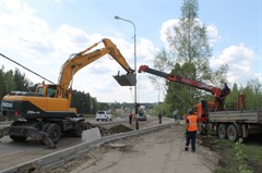 Побывав на проспекте Ленинградском, где ведется капитальный ремонт дороги, мэр пообщался с руководством фирмы-подрядчика, обсудил ход работ. По информации Службы подготовки и обеспечения градостроительной деятельности, на проспекте демонтировано более двух тысяч погонных метров старого бортового камня, установлено 1,7 тысяч погонных метров нового. Идет устройство ливневой канализации с установкой новых дождеприемных колодцев. Демонтировано и установлено 1300 метров бортового камня на тротуаре. Ведутся подготовительные работы под устройство асфальтобетонного покрытия.