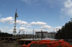 Полным ходом идут работы на строительной площадке новой общеобразовательной школы в микрорайоне Ленинградском.
