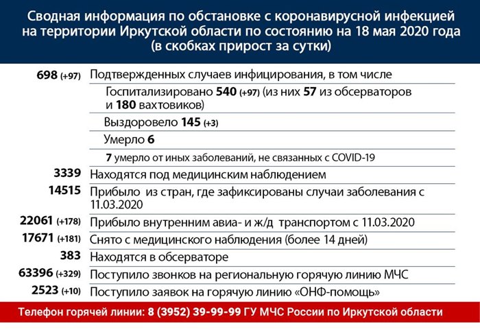 Сводная информация по обстановке с коронавирусной инфекцией на территории Иркутской области
