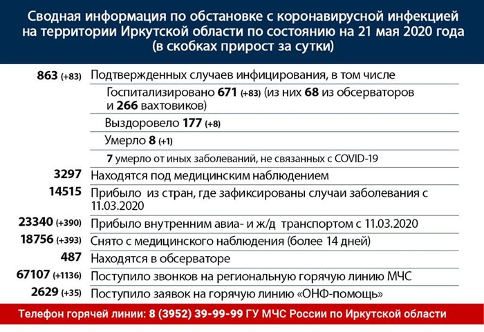 Сводная информация по обстановке с коронавирусной инфекцией на территории Иркутской области