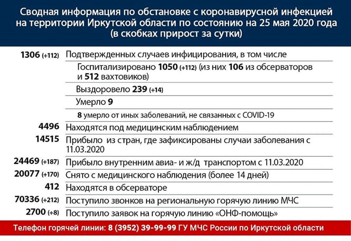 Сводная информация по обстановке с коронавирусной инфекцией на территории Иркутской области