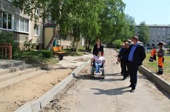 В сопровождении Марии Даниловой председатель общества инвалидов-колясочников проехала по дорожкам, осмотрела места съездов. В ходе проведенного осмотра, Ирина Дружинина выразила пожелания подрядчикам, исходя из собственного опыта передвижения на коляске, обратить внимание на отдельные участки и обустроить их таким образом, чтобы колясочники могли беспрепятственно передвигаться по территории двора и сквера.