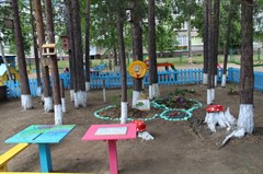 Педагоги детских садов всегда очень творчески подходят к оформлению территории своих учреждений. Высаживаются цветы, разбиваются клумбы, робатки, появляются новые саженцы декоративных и ягодных кустарников.