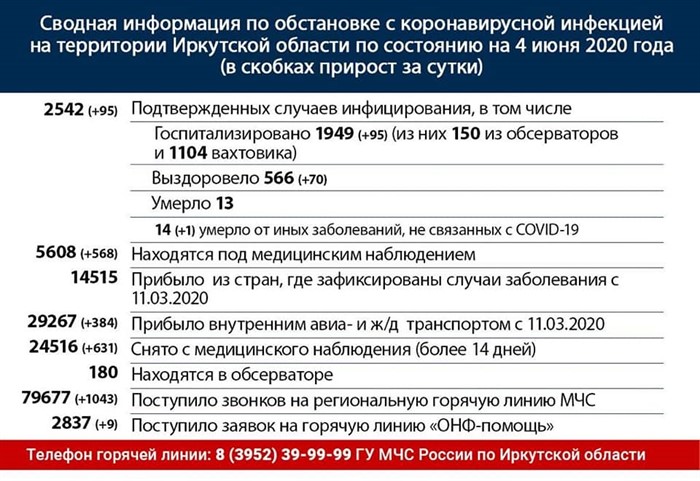 Сводная информация по обстановке с коронавирусной инфекцией на территории Иркутской области